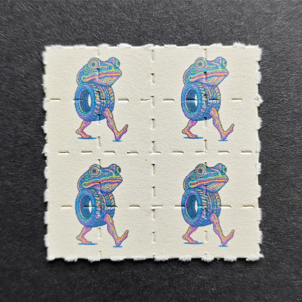 Visually, the character feels like a spirit from a glitchy, cybernetic dream world. Its intense colors and distorted anatomy create a sense of overstimulation and hyperreality. There’s no story – only sensation, absurdity, and resonance with visual overload. This is what brainrot is all about: anti-meaning as aesthetic weapon. The blotter turns the meme into a surreal ritual object. It’s funny, freakish, and deeply 2020s.